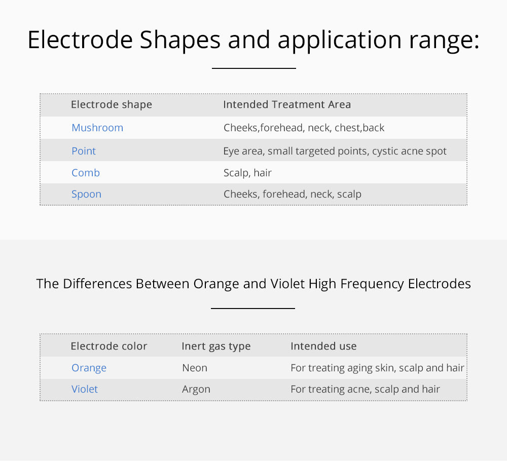 Point Electrode: Targets small areas, reducing the appearance of blemishes and puffiness (eye area and acne spots)