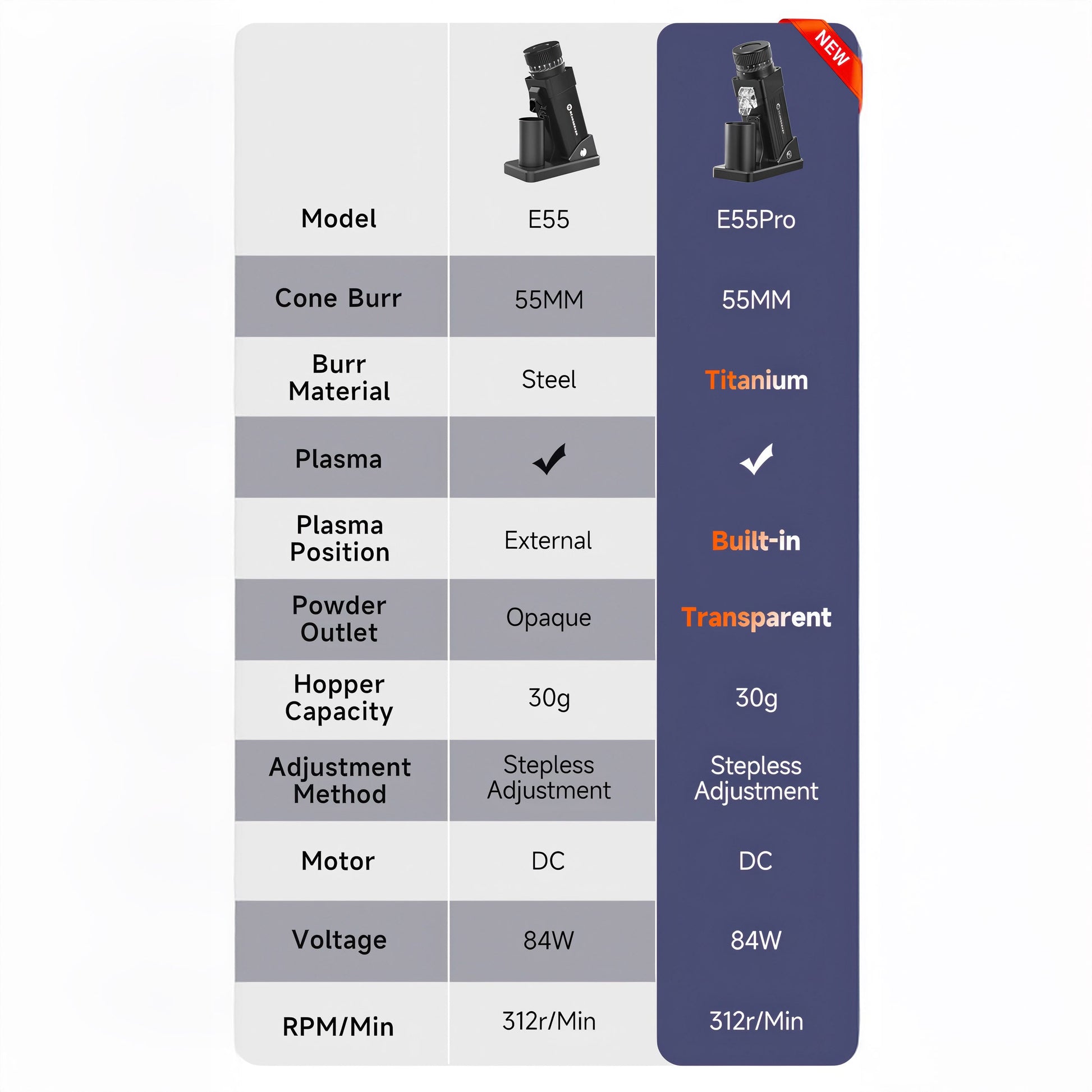 Unlock precise grinding with the STARSEEKER E55Pro. Its 55mm titanium-plated burrs, 100-step stepless adjustment, and anti-static tech deliver consistent espresso-to-pour-over results in a durable all-metal design.