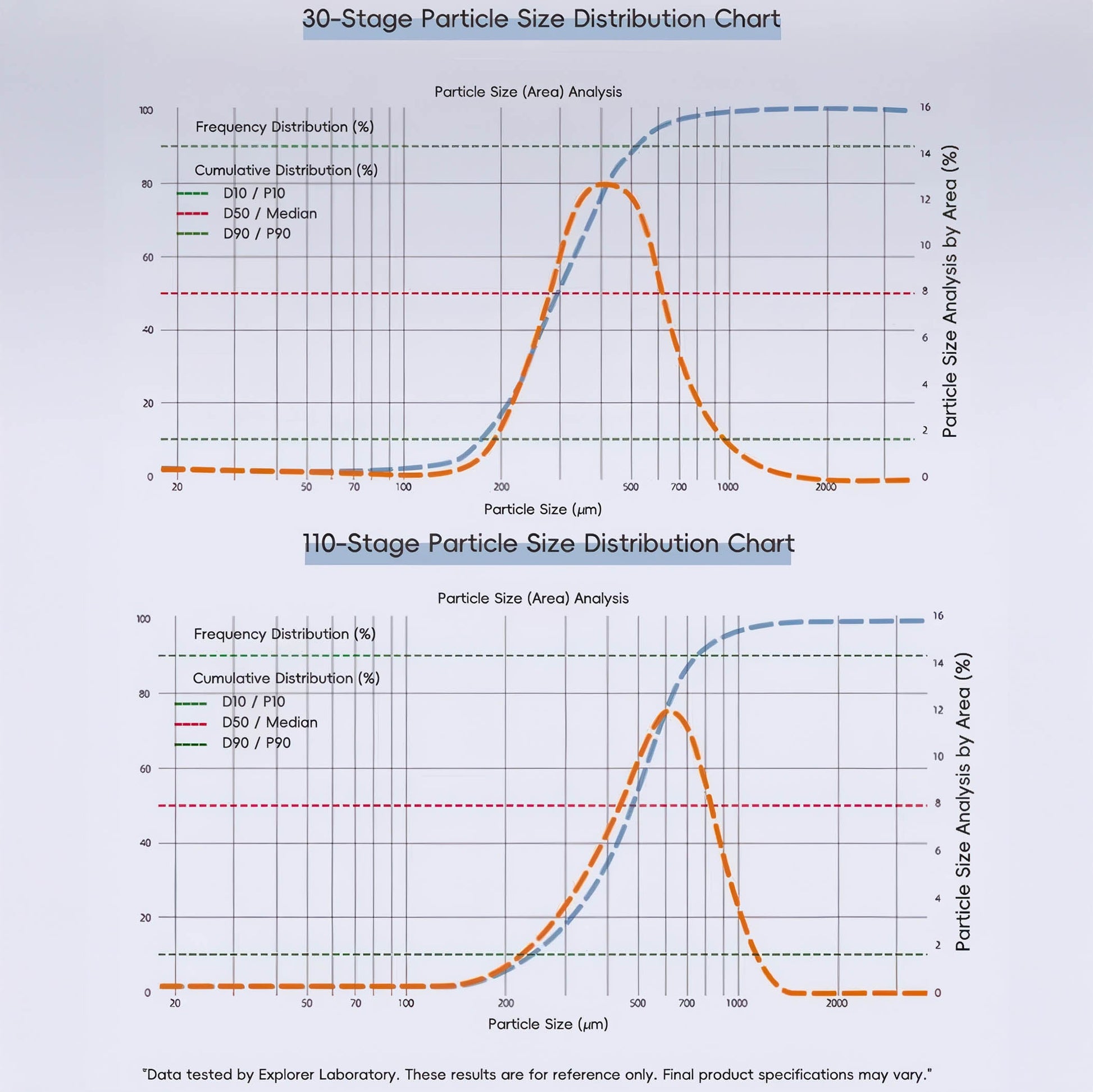 - Particle Size Distribution: Lab-tested 30-stage and 110-stage analysis