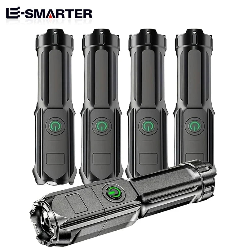 Telescopic Zoom Tactical Flashlights Rechargeable LED Torch 4 Lighting Modes Long-Range Waterproof Camping Fishing Flashlight