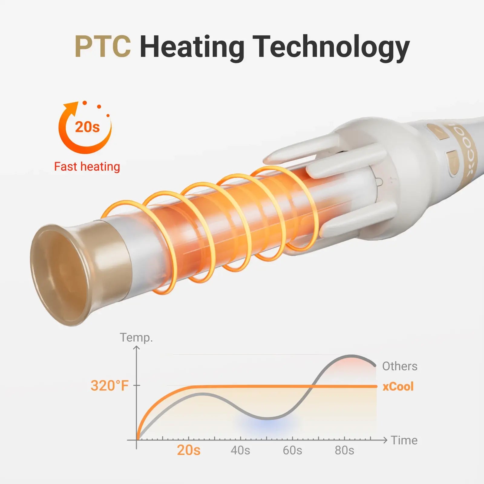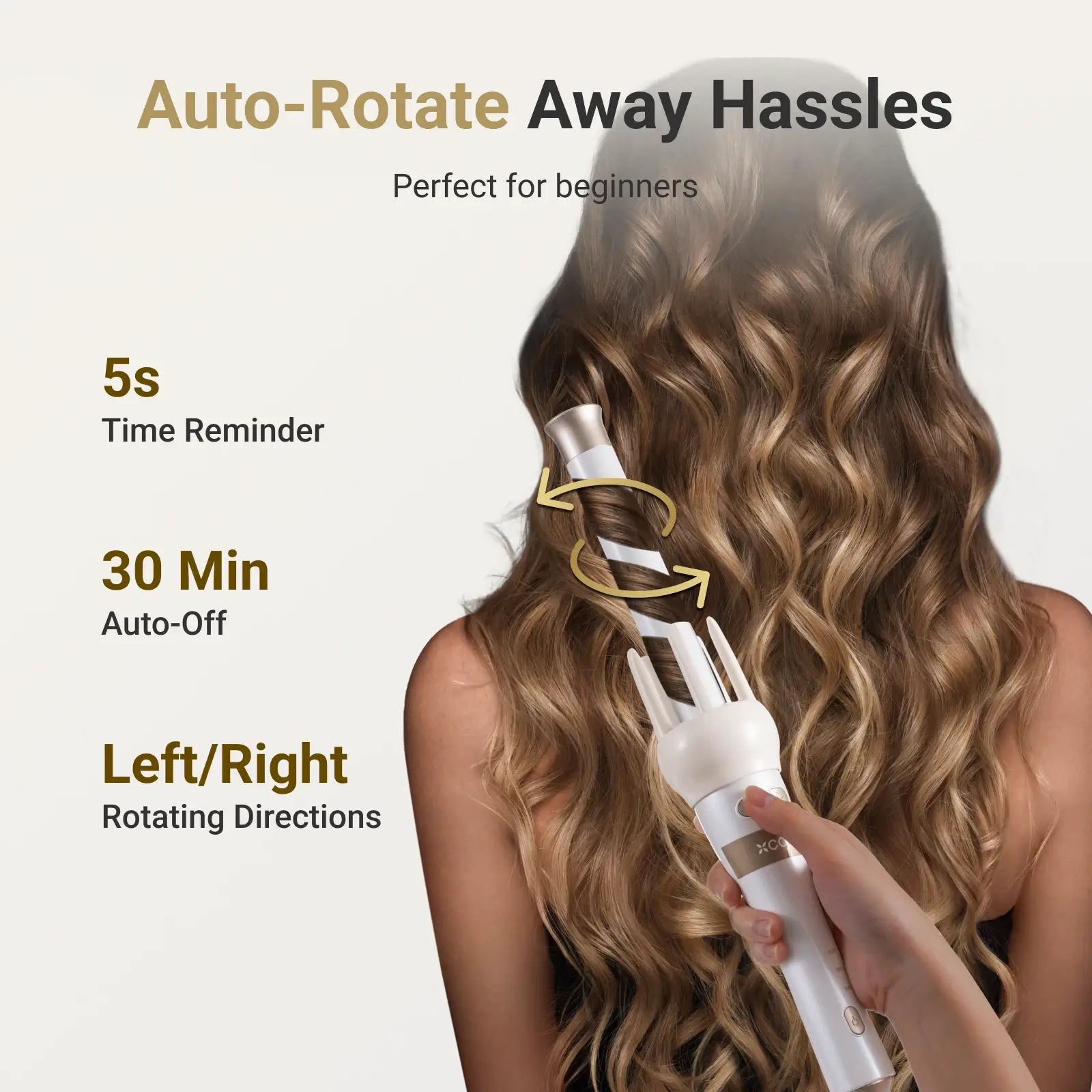@Features Easy One-Key Auto-Rotate Curler: Simply put a strand of hair to xCool hair curler, press the left/right button, and wait for 5s until beeps are heard. The curls are finished! Bidirectional rotation enables versatile styles. No more hassle of manual curling, perfect for beginners. 3-in-1 Hair Curling Iron: Our curling wand comes with 3 heads (1/2 inch for tight curls, 1 inch for beachy waves, and 1 1/2 inch for loose curls). The extended barrel is perfect for thick hair, ensuring a seamless and effortless styling experience. Healthy, Moisturized, and Frizz-Free Hair: Indulge in healthy, lustrous curls with our ceramic tourmaline-coating curling wand. Infused with 50 million negative ions, it seals moisture into your hair, effectively reducing frizz and static while adding a radiant shine. Auto-Stop Anti-Snagging Design: xCool 3-in-1 automatic curling wand ensures worry-free styling by automatically stopping when the hair is tangled, preventing damage and promoting a seamless and safe hair curling experience. 3 Heat Settings for All Hair Types: 160°C/320°F for fine hair, 180°C/360°F for normal textured hair, and 200°C/400°F for coarse hair. The 5-sec timer ensures consistent curls without excess heat exposure, promoting healthier styling. PTC Super Fast Heat in 20s: Upgrade your styling routine with our curling wand's rapid 20-second heat-up! Achieve your gorgeous look in just 10 minutes, catering to your busy lifestyle with swift and efficient styling. Magnetic Barrels for 1-sec Swaps: To change a barrel, just align the interface, insert the barrel into the curling iron. The magnetic attachment feature allows for quick and effortless interchangeability of curling barrels, providing users with the convenience of seamlessly switching styles. Quality Refined: Dual voltage is crafted for global use. 360° swivel power cord ensures tangle-free operation. The anti-scald design is to prevent accidental burns. The extended curling barrels are ideal for long thick hair. 30-minute auto-off enhances safety during use. |